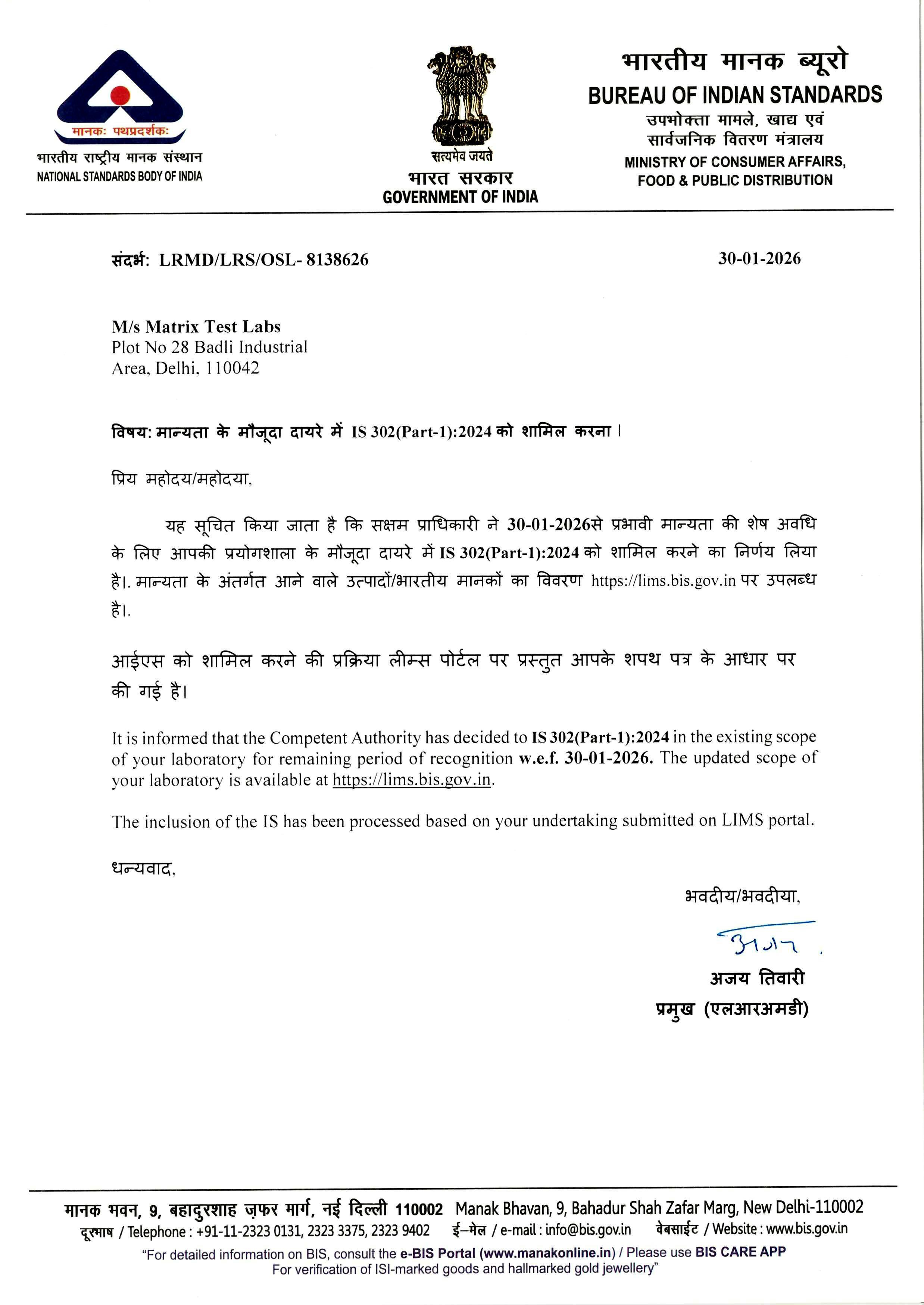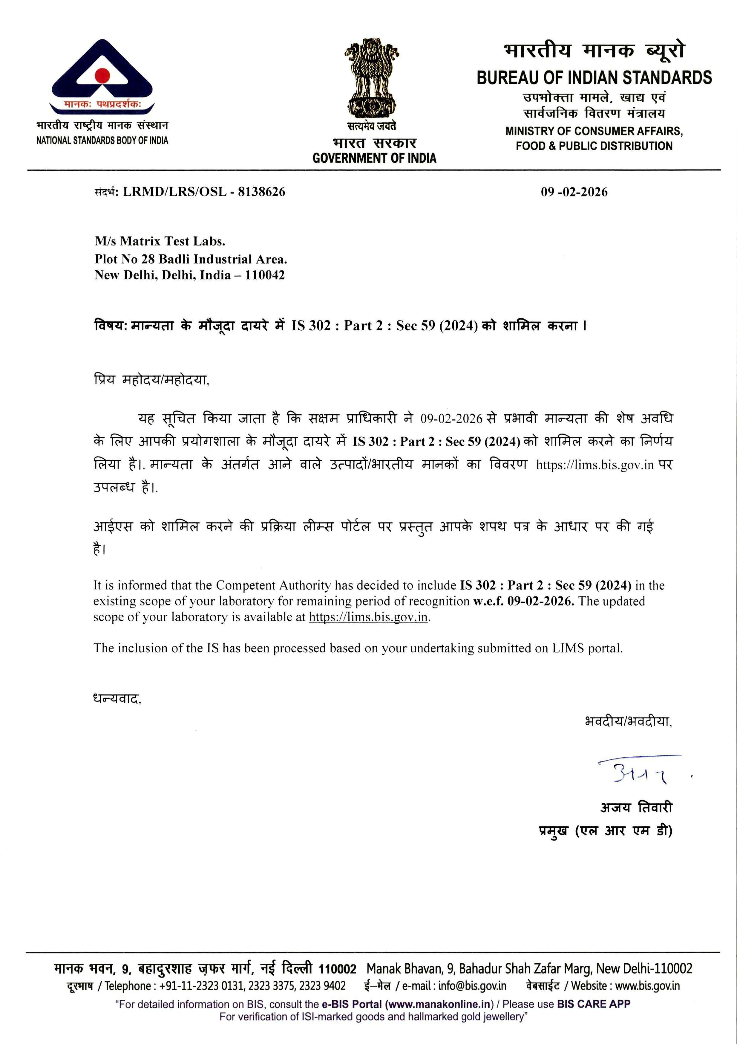 BIS CERTIFICATE